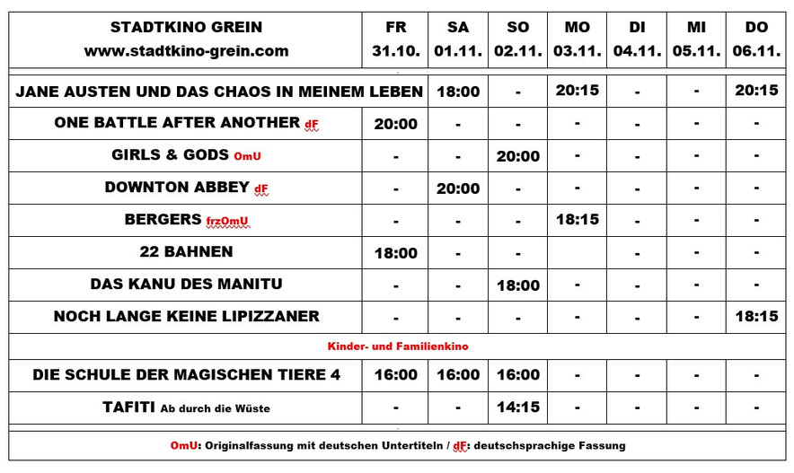 Programm : 31.10. - 06.11.